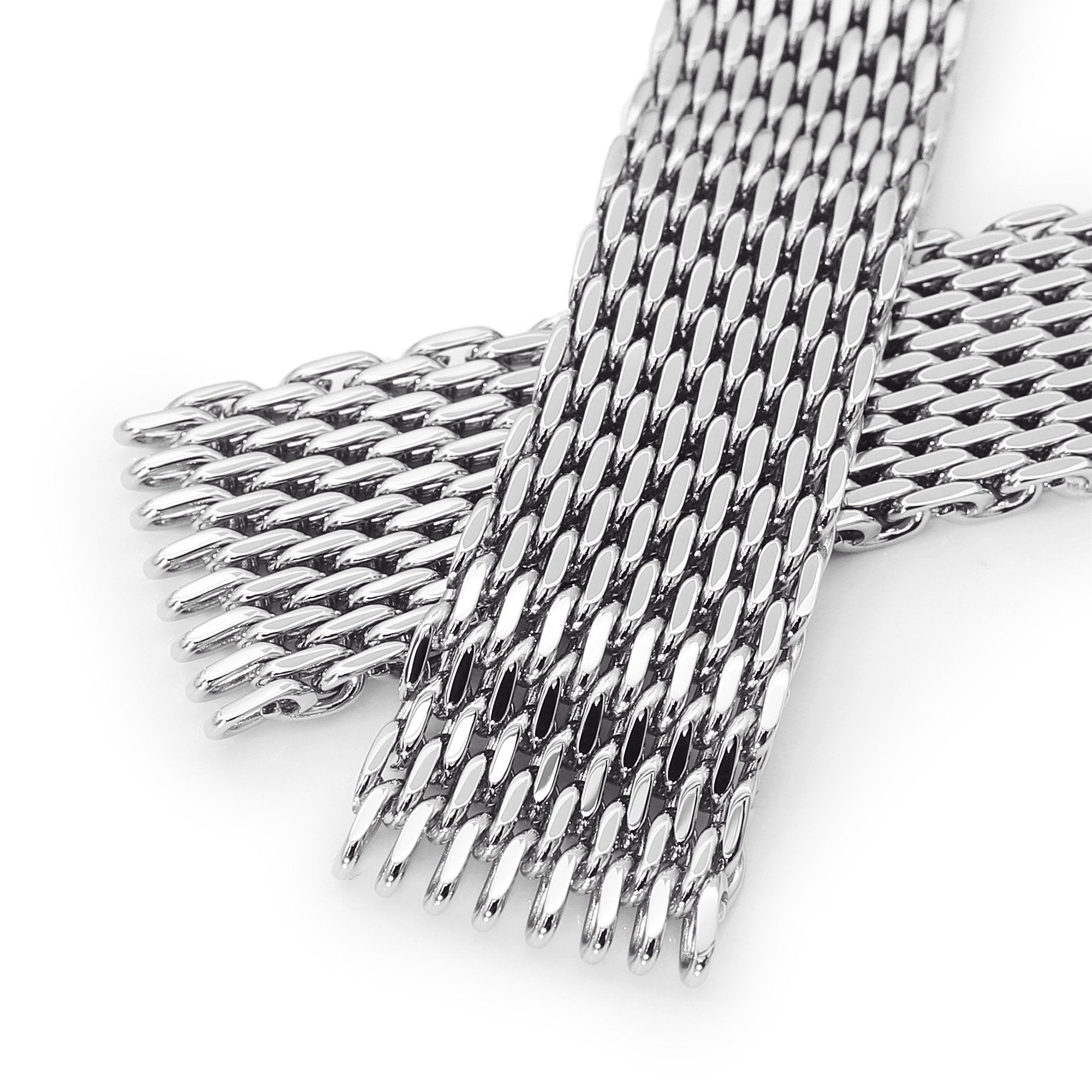 20mm Tapered Shark Mesh Polished Stainless Steel Watch Bracelet