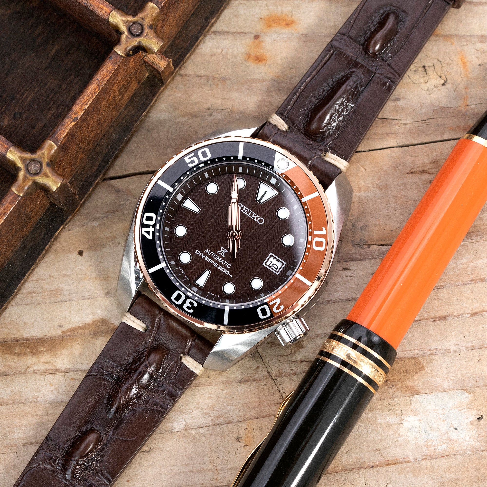 Watch Bands Lookbook demo watches by Strapcode: Citizen Promaster Marine Godzilla SP Cingular Point Limited Model NY0080-21Z, SEI Sumo Rootbeer SPB192; SEI 5 Sports 40mm SRPE53K1 Blue Dial Automatic Watch