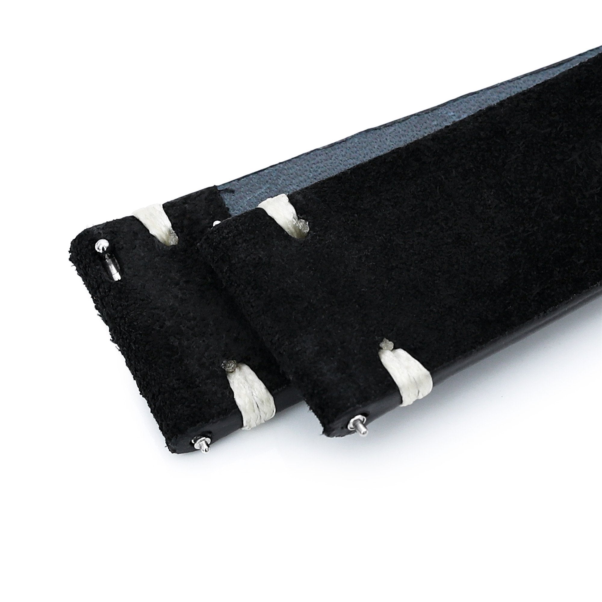 20mm or 22mm MiLTAT Black Genuine Leather One-piece Suede Quick Release Watch Strap, V-Clasp