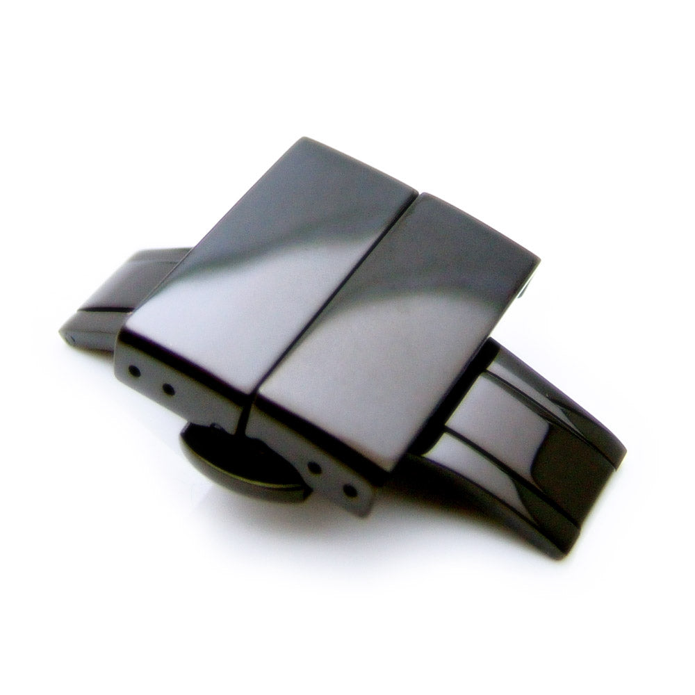 20mm, 22mm, 24mm Deployment Buckle / Clasp, IP Polish Black Stainless Steel with Release Button