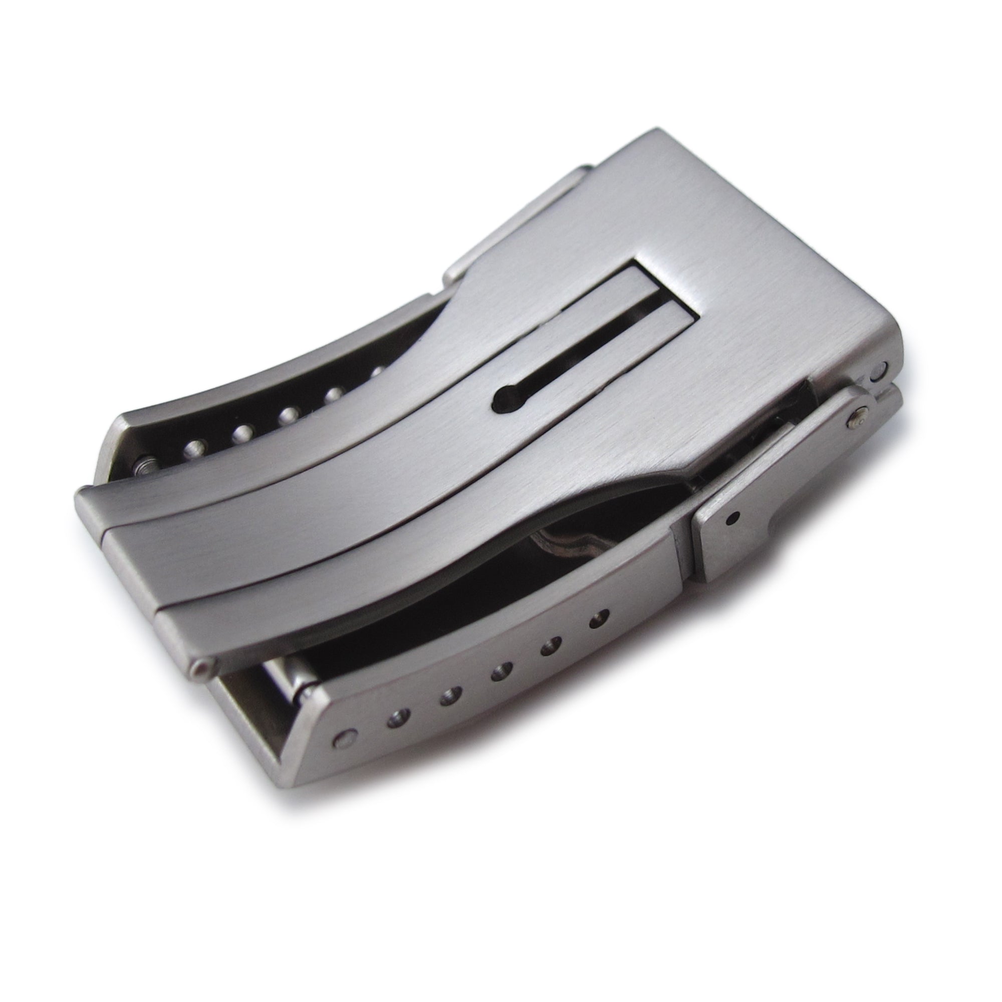 18mm, 20mm, 22mm or 24mm Stainless Steel Chamfer double locks Diver Clasp for Watch Band, 6 adjust holes and reformed Flip-Lock, Brushed