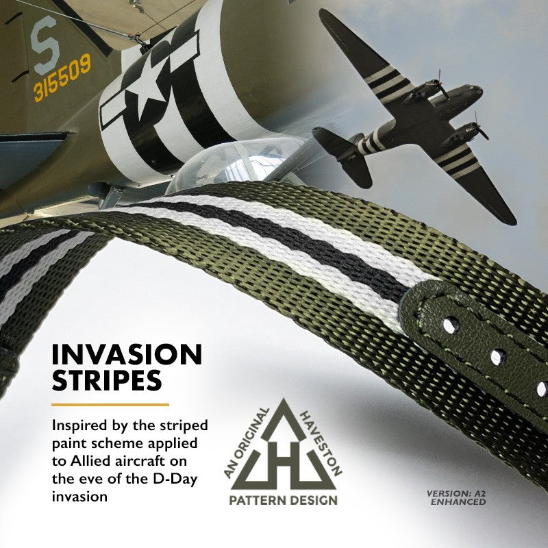 • An original Haveston Straps pattern design: Haveston's original launch design, based on the distinctive striped paint scheme applied to Allied aircraft on the eve of the D-Day invasion.